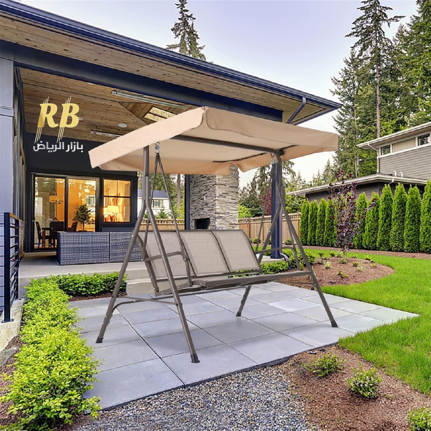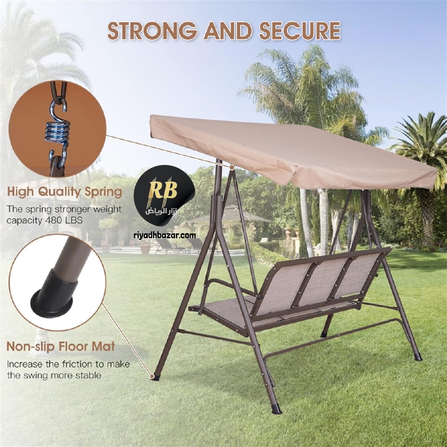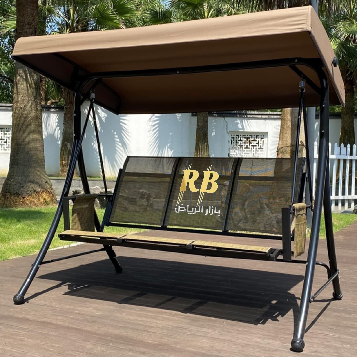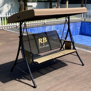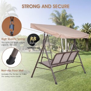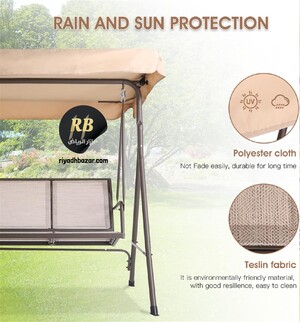 استمتع بأوقات استرخاء هادئة في حديقتك أو على الشرفة مع الأرجوحة الخارجية الأنيقة بثلاثة مقاعد ومظلة لحمايتك من أشعة الشمس.
