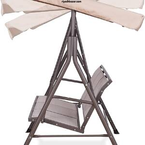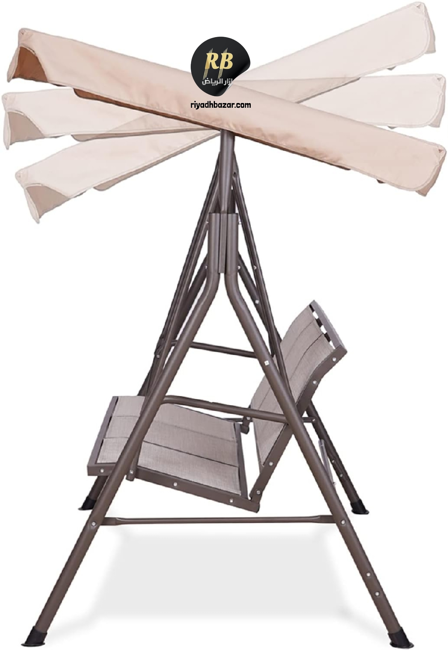 المواد: إطار معدني قوي، مقاعد شبكية متينة، ومظلة قماشية