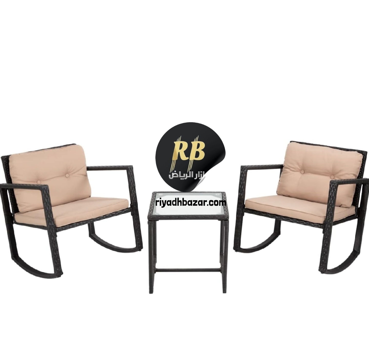 اجعل لحظات الاسترخاء في حديقتك أو فناءك أكثر رفاهية وراحة مع هذا الطقم الرائع من الكراسي الهزازة مع الطاولة الجانبية. يتميز هذا الطقم بتصميمه العصري والمريح، مما يجعله إضافة مثالية لأي مساحة خارجية.